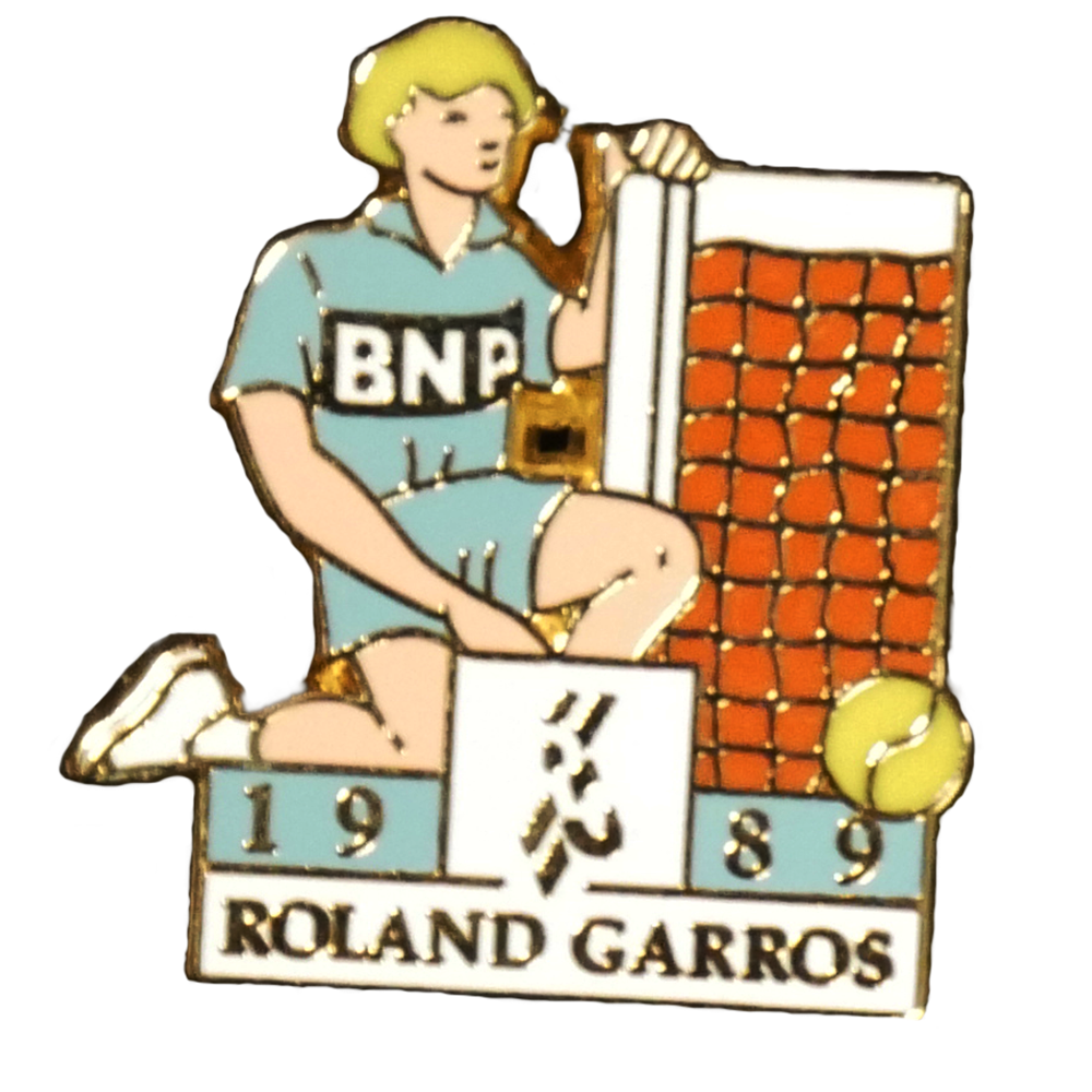 Pins gained popularity in 1987 during the Roland-Garros international tennis tournament, when they were used for advertising and to gain publicity. The pins were created by French medal maker Arthus-Bertrand and enjoyed high popularity. They thus became a fashionable accessory, as tastes began to change. The design consisted of a spike, the back of which was covered by a clasp.