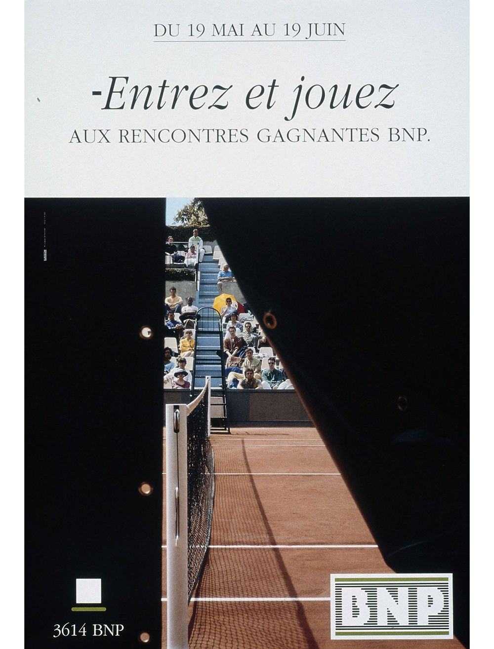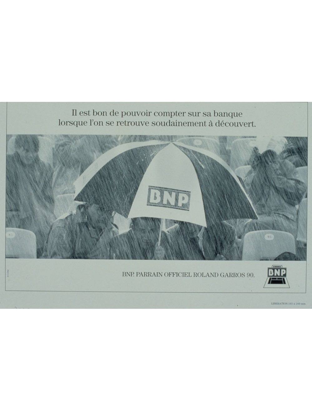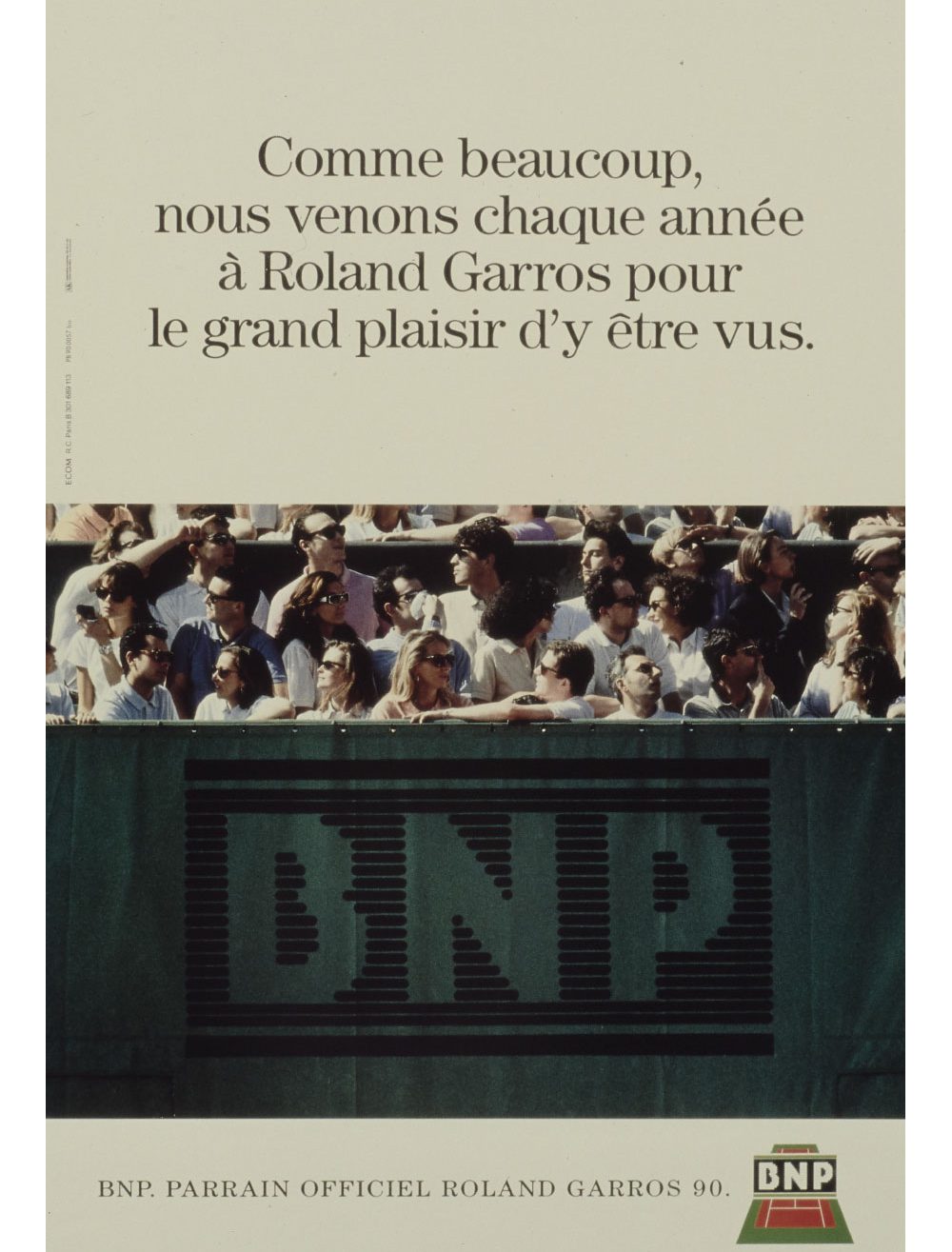 Un logotype est créé pour le 20e anniversaire du partenariat, en 1993. Il est décliné sur les tenues des ramasseurs de balles, les cartons d’invitations, des objets publicitaires, l’animation commerciale et dans les agences BNP. Enfin, la BNP bénéficie gracieusement dans le magazine officiel de Roland-Garros édité avant chaque tournoi annuel de la 4e de couverture en quadrichromie.