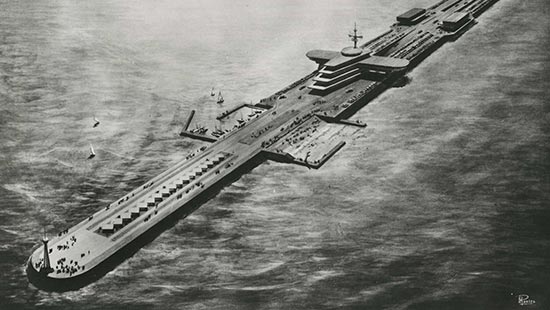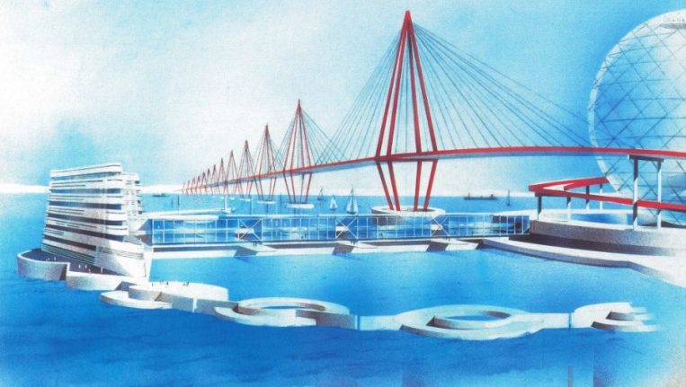 Le 1er projet de juillet 1961 propose un pont de 33 km de long, composé de 10 voies de circulation dont 2 ferroviaires.